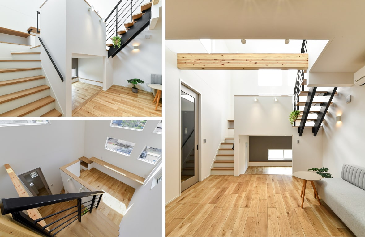1. 吹抜け×スキップフロアによる空間設計