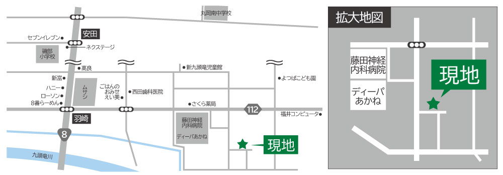 | 交通 | 京福バス県立病院丸岡線 「羽崎」バス停から750m | ||