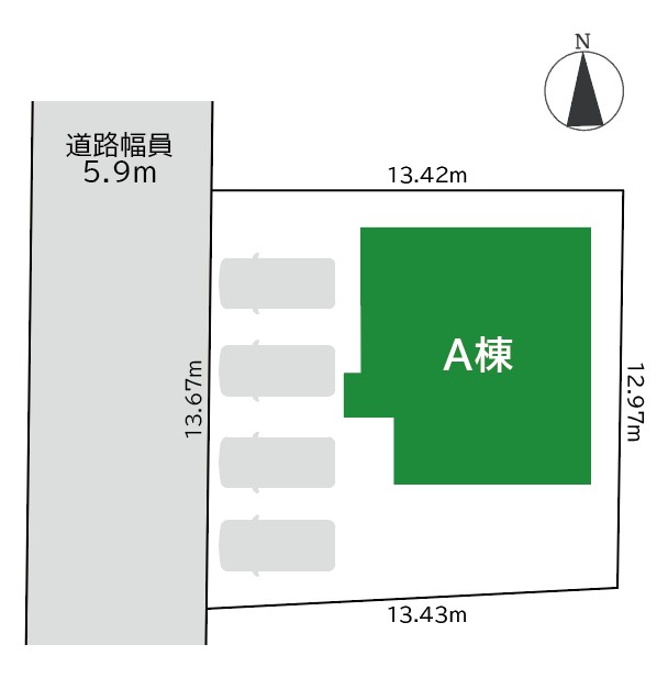 | 接道状況 | 【西側】道路幅員5.9m、接面13.67m | ||