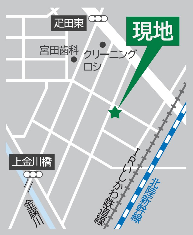 - IRいしかわ鉄道東金沢駅 …1300m(徒歩17分)