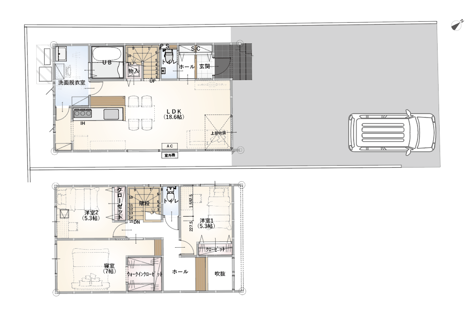 敷地内は車4台分の駐車スペースを確保しており、2台並列+2台縦列で、柔軟な使い分けが可能です。