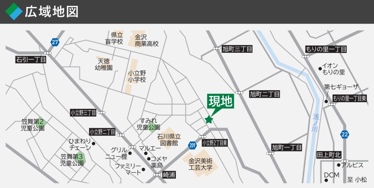- 小立野三丁目バス停 …600m(徒歩8分)