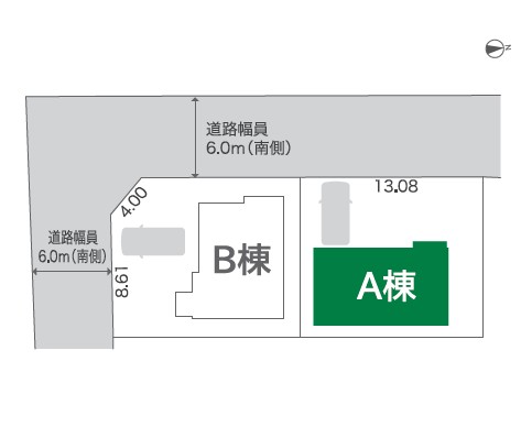 | 接道状況 | 前面道路:(西側)6.0m、間口:13.08m | ||