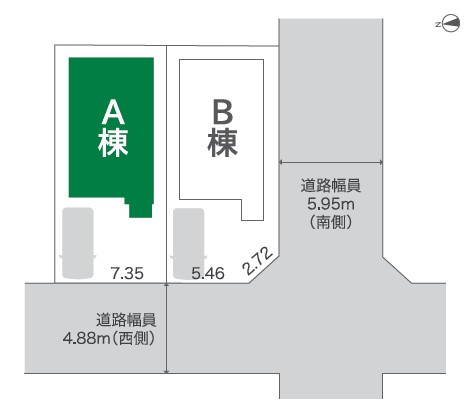 | 接道状況 | 前面道路:(西側)4.88m、間口:7.35m | ||