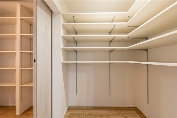 室内は、各部屋に収納+大型パントリーが備わっており、収納が多く住むにあたって嬉しい仕様となっております。