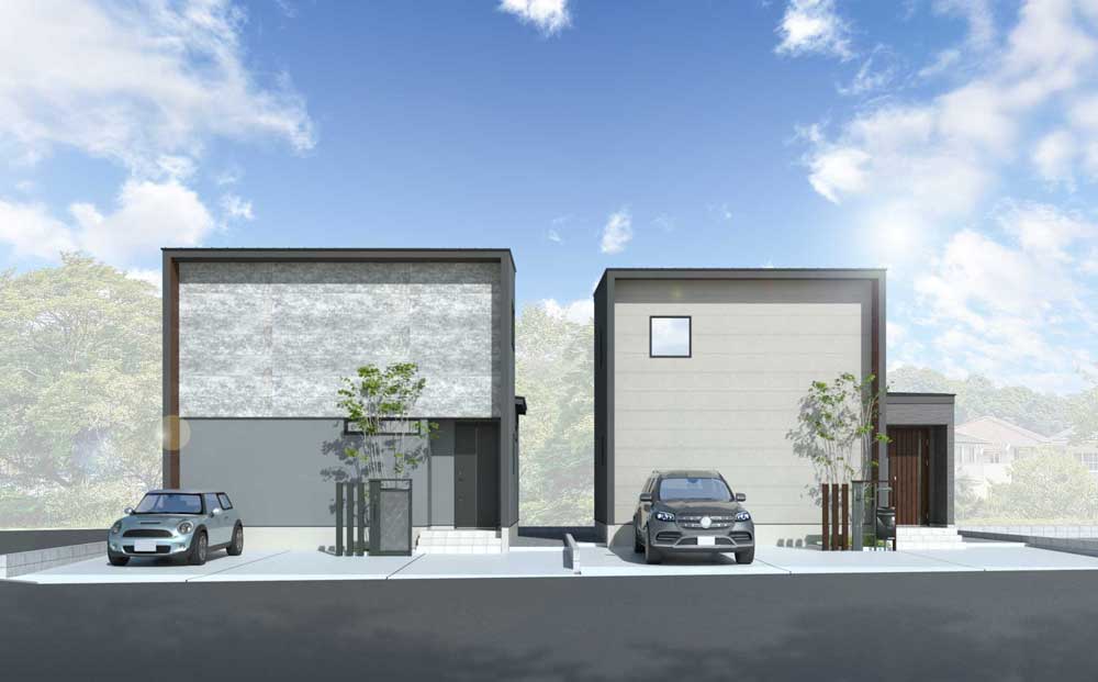 向かって右手側のB棟は後日上棟を予定しております。