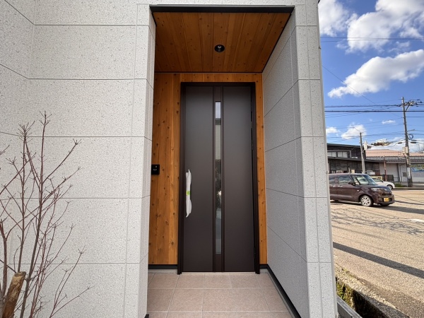 外観は、白を基調としたフラットデザインにグレーの吹付がアクセントになっており、シンプルではありつつ個性のあるお洒落なお家です。