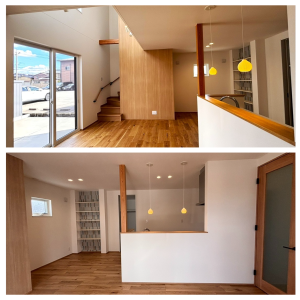 また、リビングと階段との間には化粧梁を設置しました。空間に「魅せる木」としてのアクセントになり、より立体感を味わえる仕様となっております♪
