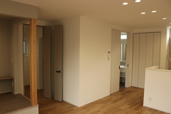 玄関から真っすぐリビングへ、一旦洗面台に寄ってから別動線でリビングへ、お家の中に2WAY動線があることで、心理的にも見えない部分で解放感を感じられますよ♪