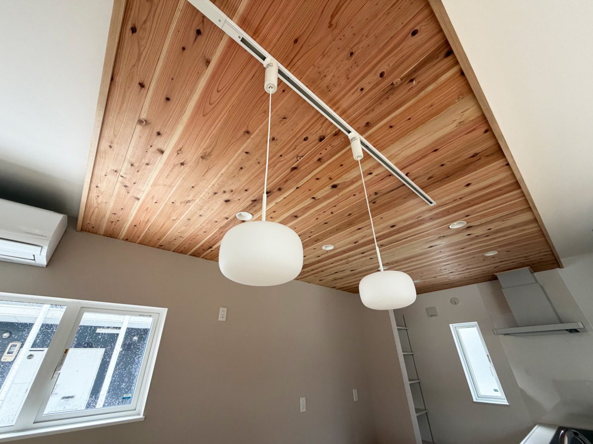 木の温もりが感じられる下がり天井。