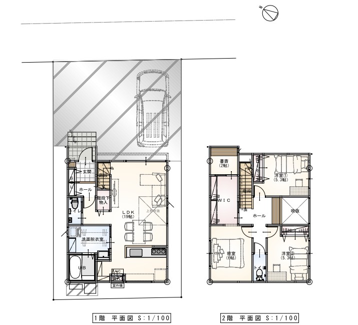 2階寝室にはウォークインクローゼットを挟んで約2帖の書斎があり、パブリックとプライベートの使い分けができる素敵な間取りです♪