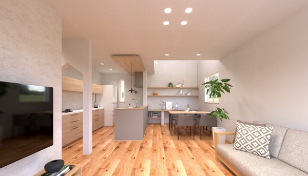 18.5帖の広々としたLDKには北側の吹抜から間接光が差し込み、暮らしに心地よい解放感をもたらしてくれます!