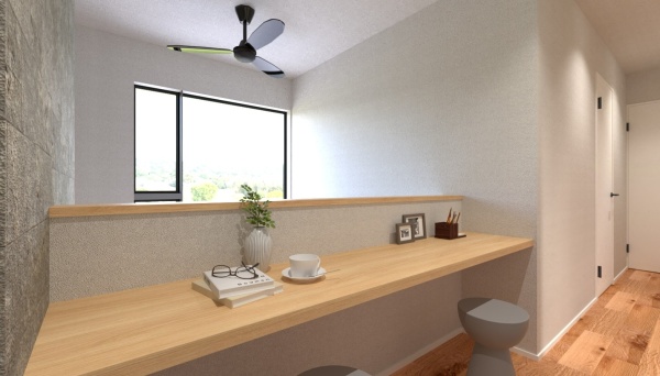 2階の吹抜けに隣接した開放感のあるホールにカウンターを設け、ゆとりあるワークスペースがあります!