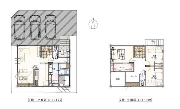 角地を活かした陽当たりの良さから解放感があり、南側に設けた吹抜からも自然光が差し込むので