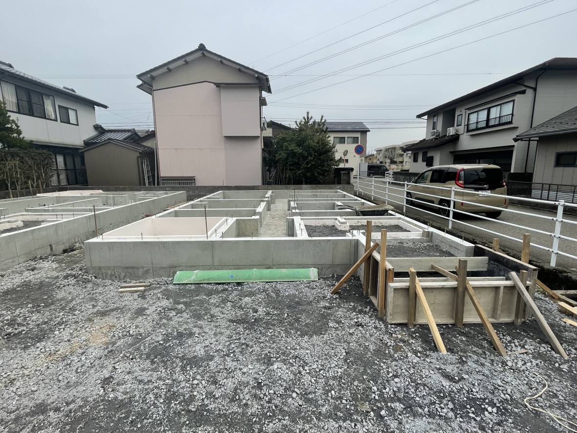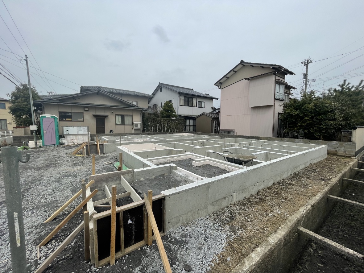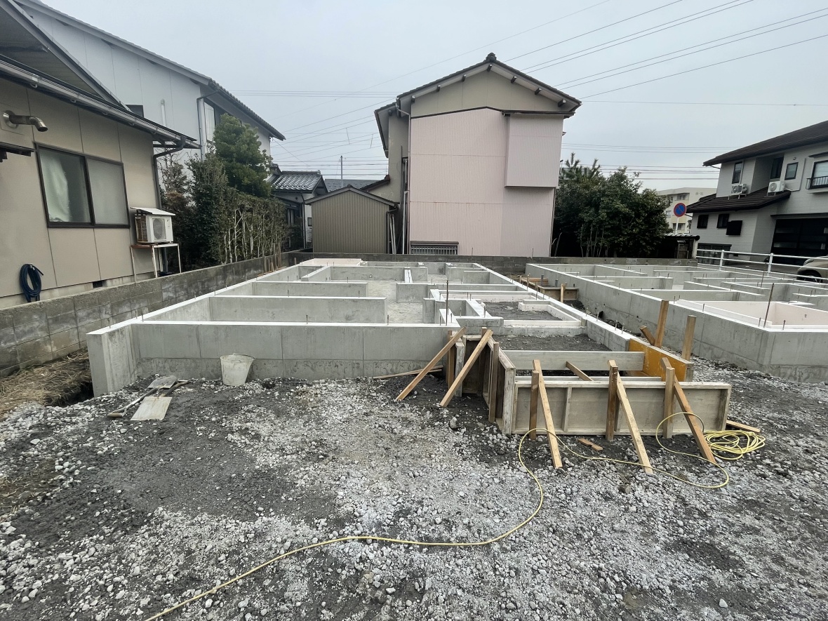 金沢市上荒屋2丁目分譲住宅の工事が始まり、間もなく基礎工事も完成です♪