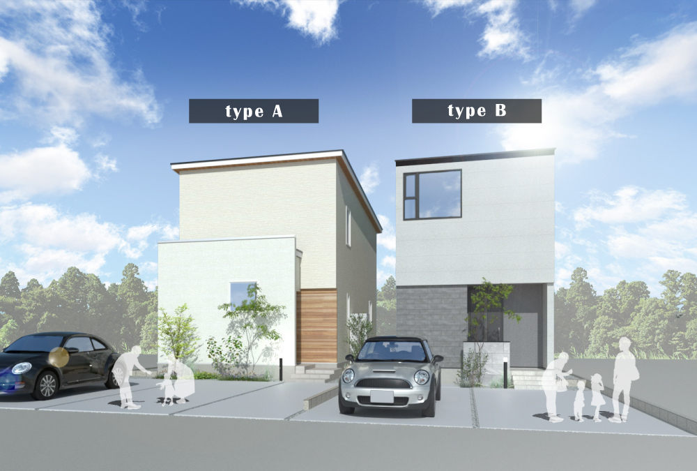 A棟は、ボックス型のシンプルな形状で、温かみのあるナチュラルモダンスタイルになる予定です♪