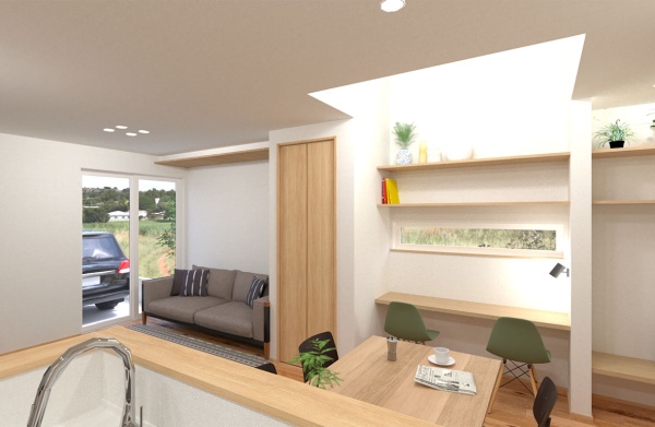 日当たりのいい空間に魅せる収納と、カウンタースペースを配置することで、明るくおしゃれな自分だけの空間を演出することができます。