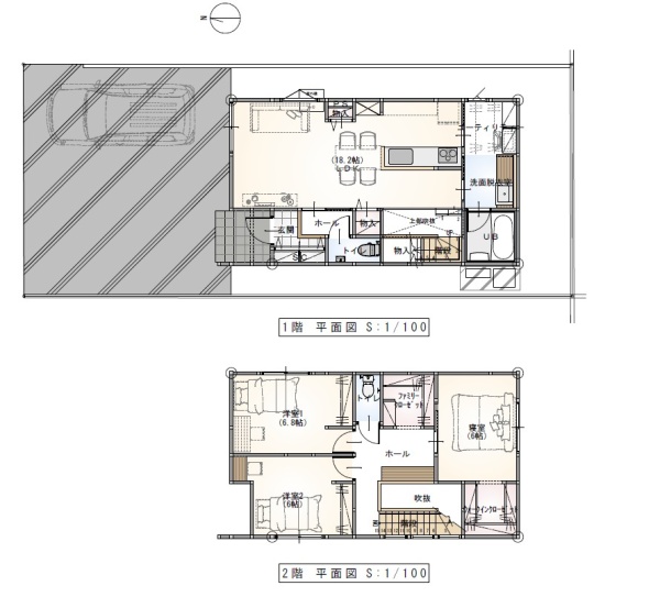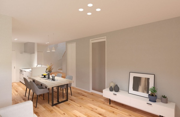 18.2帖の大容量のLDKと、階段に併設された吹抜け設計によって帖数以上の解放感を得られることができます。
