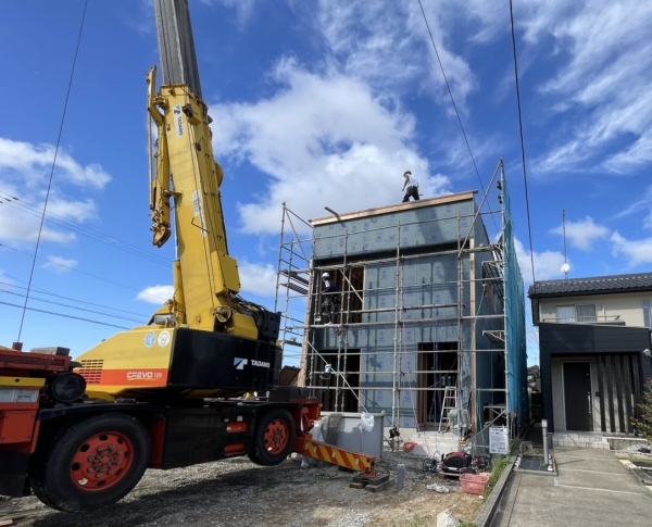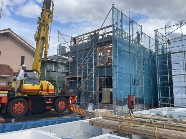 小松市吉竹町分譲住宅全4棟のうち西向きのA棟と南向きのB棟の棟上げ工事がスタートしました♪