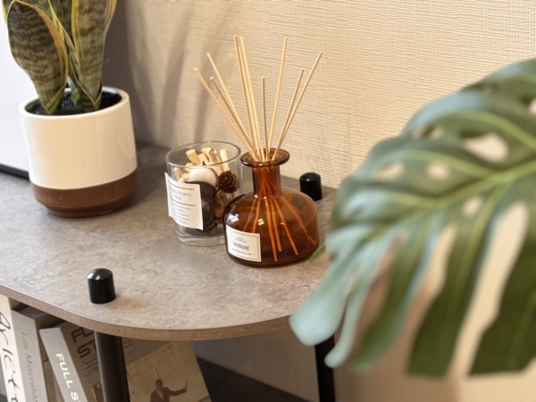 テレビ台にはスティックアロマ。より高級感のある雰囲気に。