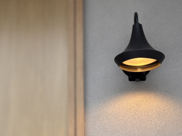 玄関ポーチの照明は黒色のアルミニウムでかわいらしいデザイン