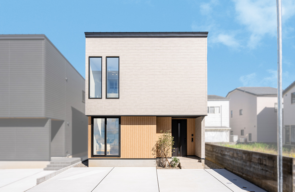 タイル調の存在感と、木目のやさしさが織りなす外観デザイン