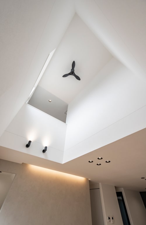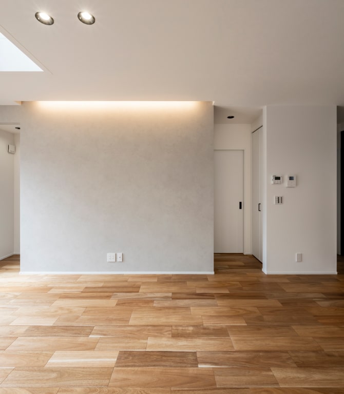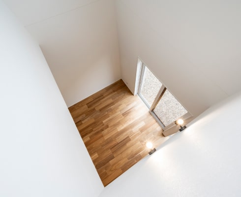 LDKには、天井部分に吹き抜けを設けることで、自然な光を取り入れやすくし、室内の明るさを確保しています。また、吹き抜けによる開放感も相まって、空間全体に広がりを感じさせる設計となっています。