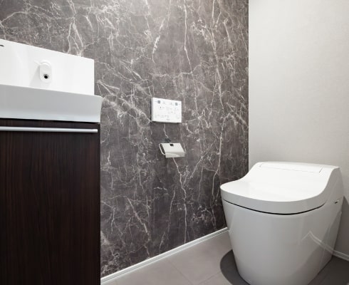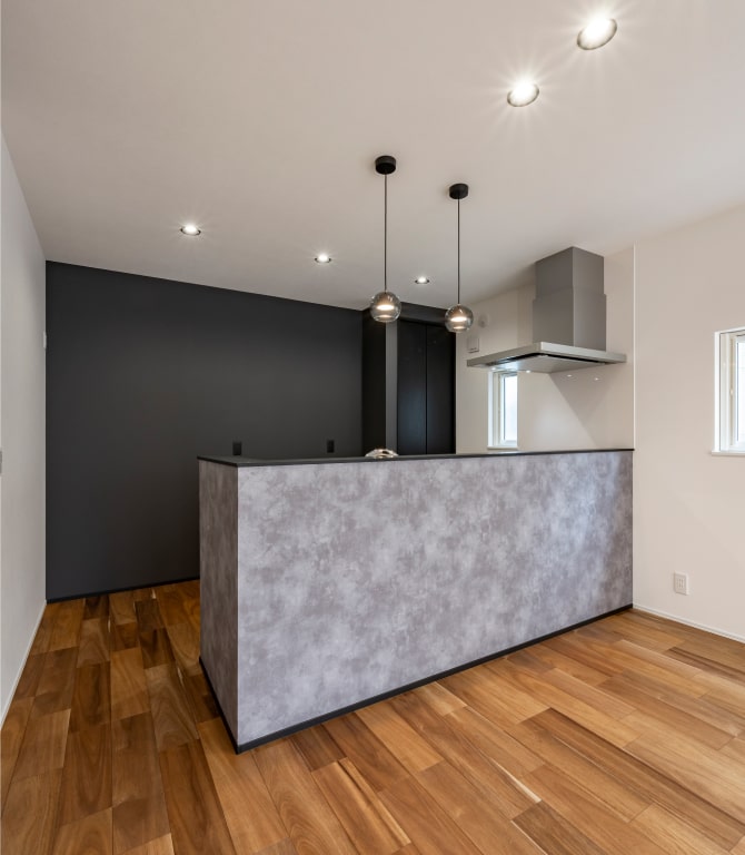 内装は、落ち着きのあるダークトーンを基調に統一し、洗練されたスタイリッシュな空間を演出しています。床材を深みのある色合いでまとめることで、シックでモダンな雰囲気を醸し出しています。