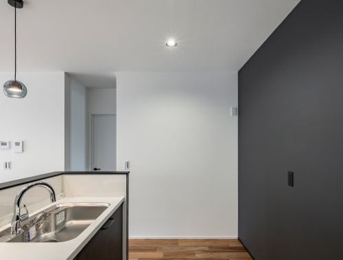 また、ダイニングにはデザイン性の高いペンダントライトが空間にアクセントを加え、全体のインテリアに華やかさと温かみをもたらしています。 -