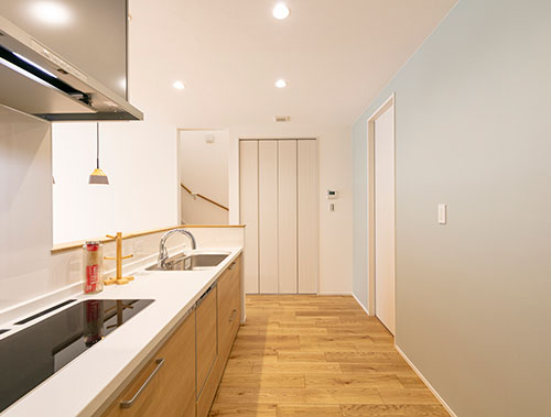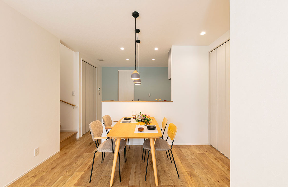 キッチン横の充実したパントリー収納、洗面室横のファミリークローゼット、ダイニング横の生活収納など用途に応じてモノを仕舞いやすい分散型収納の住まいです。