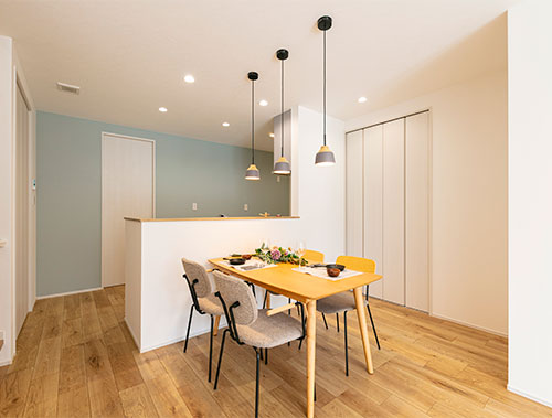 明るい木目と白を基調に、やさしく整った北欧テイスト。装飾を抑え、素材感と空間の広がりを大切にしたインテリアです。温もりのある木素材と落ち着いた配色で、暮らしに寄り添う空間となっております。