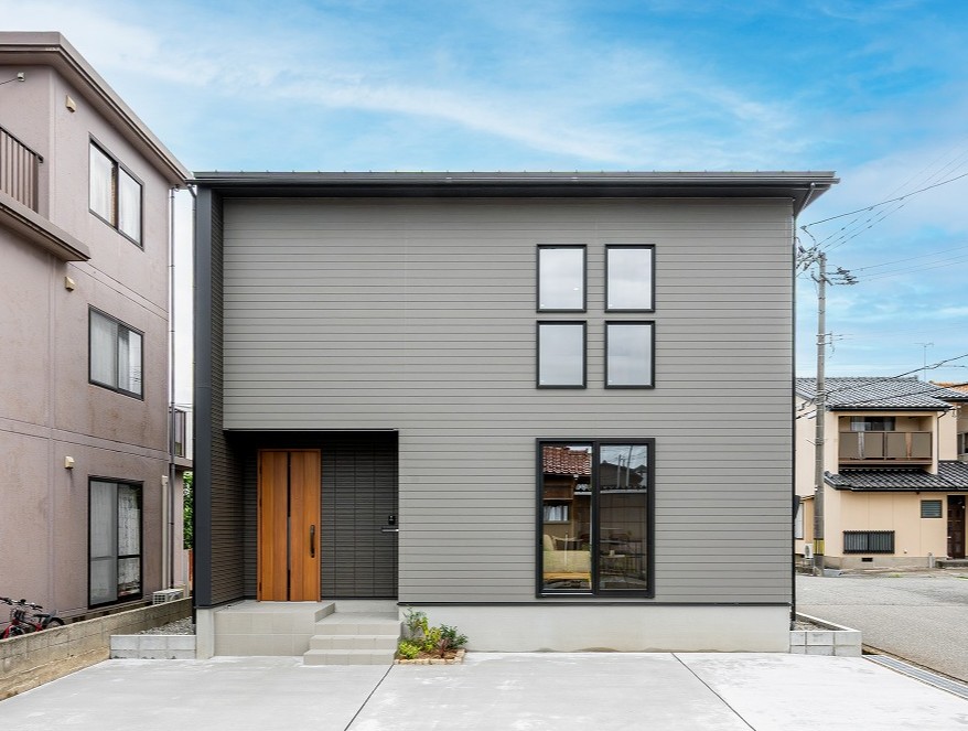 袖壁と軒に縁取られたクールモダンな外観デザイン